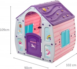 Dječja kućica Magical House Unicorn idealno je mjesto za kreativnu igru – s veselim motivima jednoroga i duge potiče maštu i stvaranje vlastitih priča. Zahvaljujući stabilnoj plastičnoj konstrukciji prikladna je za interijer i eksterijer te djeci pruža njihov vlastiti čarobni kutak.