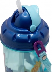 Ova lagana plastična boca dizajnirana je za djecu koja vole zabavne motive i praktična rješenja. Zahvaljujući slamki, djeci je ugodno piti, zatvarajući poklopac štiti od nečistoća, a remen olakšava nošenje na putovanjima.
