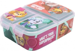 Praktična kutija za užinu s više pretinaca i motivom Paw Patrol razveselit će svaku malu školarku. Izdržljiv materijal, 1 veliki i 2 mala pretinca te bez BPA sastav jamče sigurno i pregledno spremanje užine za put, školu i igralište.