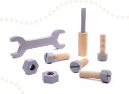 Igračka imitira stvarne alate kao što su odvijač, čekić i ključ, idealno za razvoj manuelnih vještina i mašte djece.