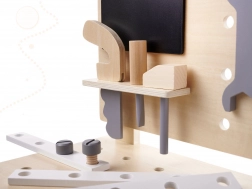 Odlična drvena igračka radionica set alata za malu djecu koja žele oponašati odrasle i otkrivati svijet oko sebe. Zahvaljujući bogatoj opremi, djeca se mogu osjećati kao pravi majstori u struci.