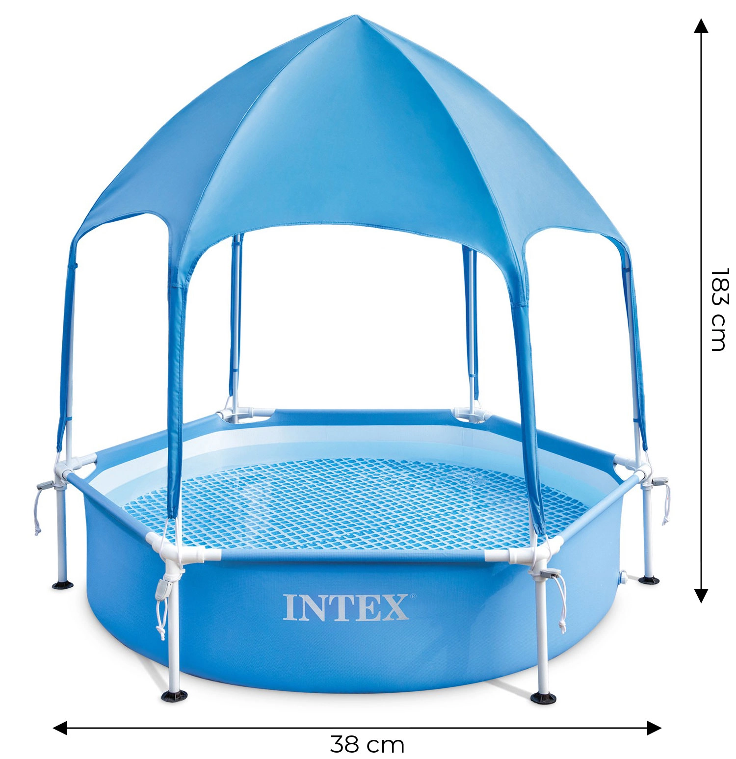 Nadstrešnica pruža učinkovitu zaštitu od sunčevog zračenja, što osigurava veći komfor i sigurnost tijekom boravka djece u vodi. Konstrukcija nadstrešnice je stabilna i jednostavna za ugradnju, što sprječava njezino klizanje ili pomicanje za vrijeme vjetra.