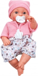 Lutka je obučena u slatki komplet – mekani ružičasti džemperić, kapicu s ušima i uzorkovane hlače. Odjeću se može skinuti, omogućujući djetetu preodjenuti lutku i više personalizirati igru. Dodatna prednost su zvučni efekti – lutka ispušta realistične zvukove djeteta, poput smijeha, blebetanja i plača. To igru čini živopisnijom, dinamičnijom i potiče razvoj ne samo mašte već i empatije i skrbničkih sposobnosti.