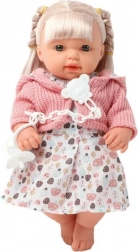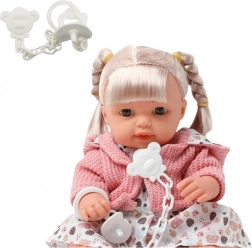 Još jedna privlačnost su realistični zvučni efekti – lutka ispušta zvukove poput smijeha ili plača, što oživljava i obogaćuje igru. Lutka ima šarenu haljinicu i mekani ružičasti džemper koji se može skinuti, što dodaje dodatne mogućnosti za kreativnu zabavu. Set također uključuje dudu s lancem i privjeskom, zahvaljujući čemu se dijete može osjećati kao pravi njegovatelj. Izrađena je od izdržljive i sigurne plastike, lagana je, ugodna na dodir i idealna za svakodnevno maženje, njegu i zajedničku zabavu.