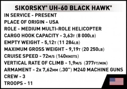 Model helikoptera Sikorsky UH-60 Black Hawk izrađen je na temelju originalne licence tvrtke Sikorsky Aircraft Corporation. Ovaj slavni vojni helikopter poznat je po pouzdanosti, mobilnosti i sposobnosti djelovanja u ekstremnim uvjetima.