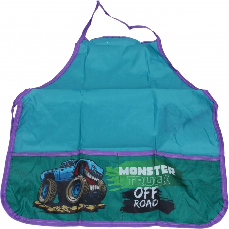 Djeca mogu birati iz šarolike ponude dizajna: nogomet, mačka, gamer, monster truck, dino, jež ili pas + mačka. Pregača je prikladna za školu, izvannastavne aktivnosti i kućno slikanje.