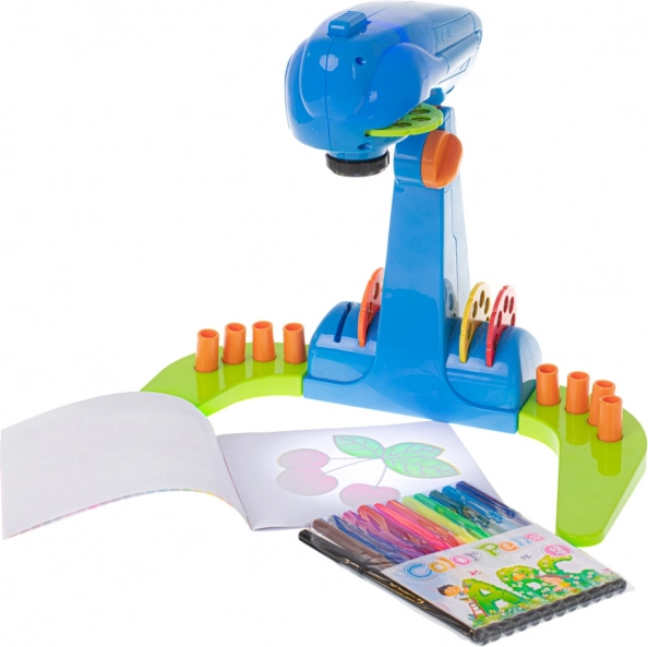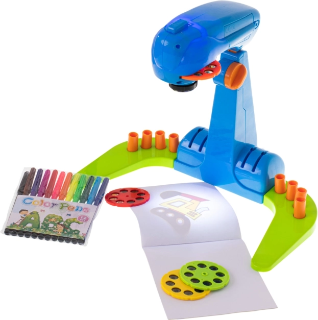 Dječji projektor za crtanje je zabavna interaktivna igračka koja potiče kreativnost i razvoj fine motorike. Projektor je opremljen obojenim kolutima, od kojih svaki sadrži 8 slika za projekciju.