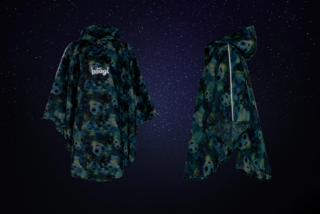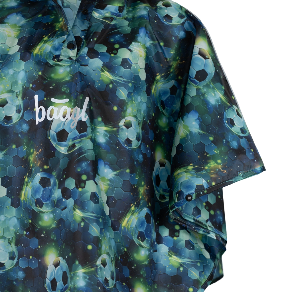 Tražite laganu i izdržljivu kabanicu za djecu za školu i izlete? Dječji pončo Baagl s nogometnim uzorkom u plavo‑zelenim tonovima osigurat će da vaše dijete ostane suho i tijekom iznenadne pljuskovite kiše. Zahvaljujući ležernom kroju lako se oblači i ugodno nosi i preko školskog ruksaka.