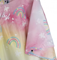 Uživajte u suhim i udobnim avanturama po kiši. Dječji kišni pončo BAAGL s motivom jednoroga oduševit će razigranim bojama i funkcionalnim detaljima. Kapuljača sa šiltom štiti lice od kapljica, dok se vodonepropusan, lagan materijal ugodno nosi i lako sprema.