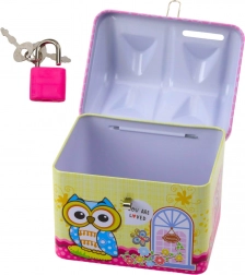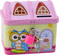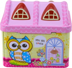 Kasica u obliku kućice s motivom sove u pastelnim bojama oslovit će svako dijete.