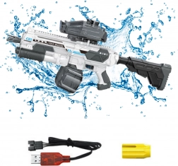 Pištolj se napaja akumulatorom 7.4V 800mAh, koji se puni putem priloženog USB punjača. Vrijeme punjenja traje do 3 sata, a potpuno napunjena baterija omogućuje do 1 sat neprekidne zabave. Praktičan prekidač na rukohvatu povećava kontrolu i sigurnost tijekom korištenja.