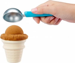 Zahvaljujući modelirajućem pijesku i praktičnoj šeflici djeca lako stvaraju realistične kuglice za kornete i zdjelice – zabava i vježba fine motorike.