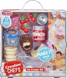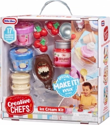 Otkrijte zabavni set za sladoled za djecu LITTLE TIKES Creative Chefs, koji potiče kreativnost, igre uloga i učenje kroz igru. Zahvaljujući 17 realističnih dodataka, trima “okusima” (vanilija, čokolada, jagoda) i višekratnom modelirajućem pijesku, djeca mogu “zahvaćati” kuglice, ukrašavati i posluživati svoje omiljene deserte prema vizualnoj kartici s receptima.