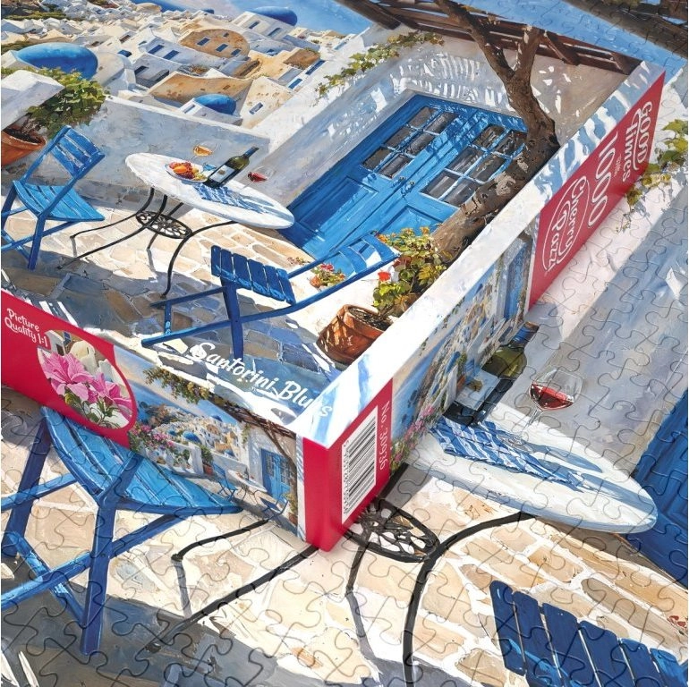 Elegantan motiv bijelih kućica i plavih krovova otoka Santorinija donosi mirnu atmosferu i sjajan vizualni doživljaj. Slagalica od 1000 dijelova idealna je za srednje napredne i iskusne ljubitelje slagalica te nudi ugodnu kombinaciju opuštanja i koncentracije.