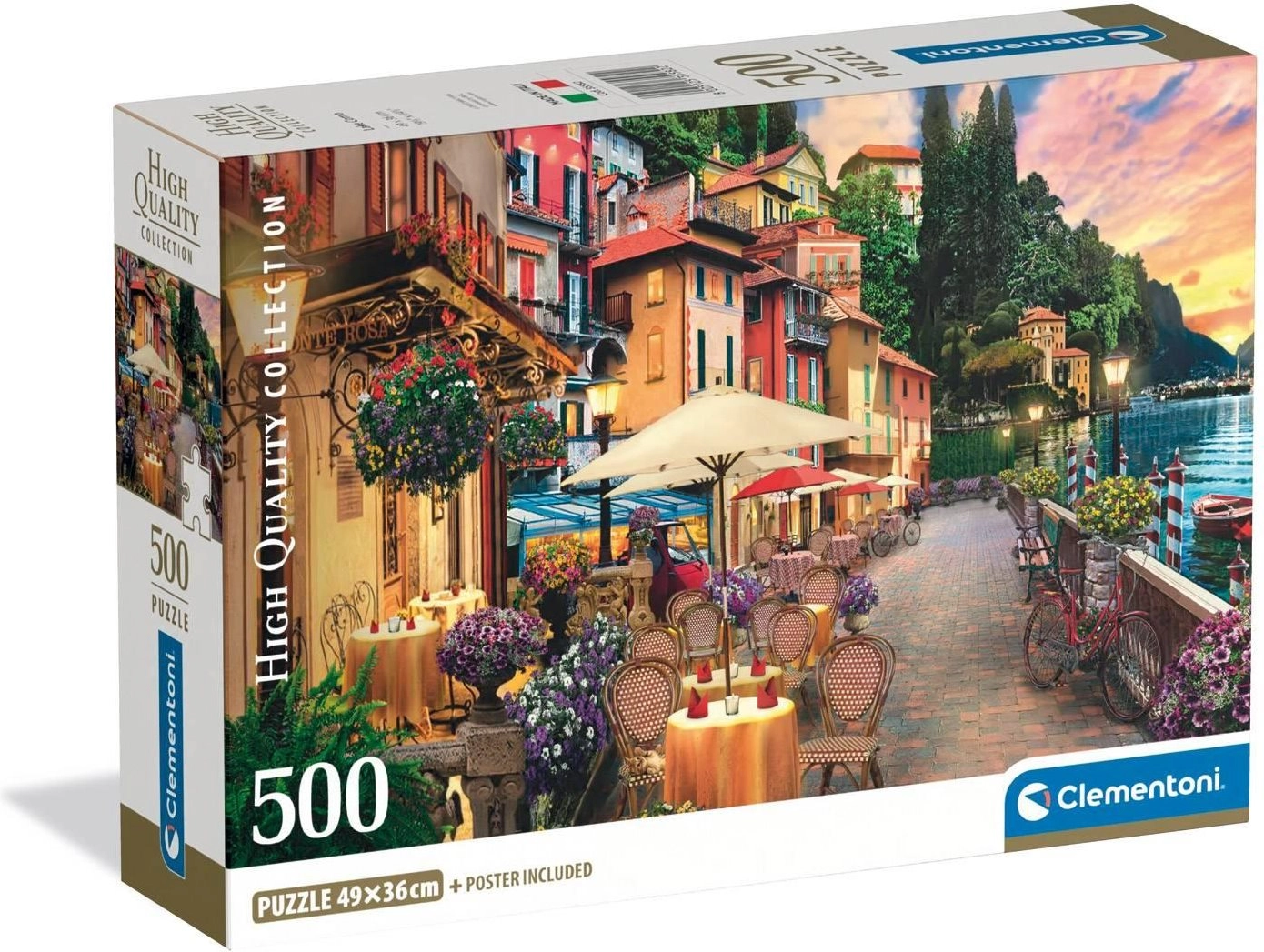 Slagalica „Kod jezera Como” brenda Clementoni je zadivljujuća slagalica s 500 dijelova koja donosi slikovit pogled na prekrasno jezero Como u Italiji. Ova slagalica dio je prestižne High Quality Collection, poznate po izvrsnim tiskarskim tehnikama i preciznoj izradi dijelova.