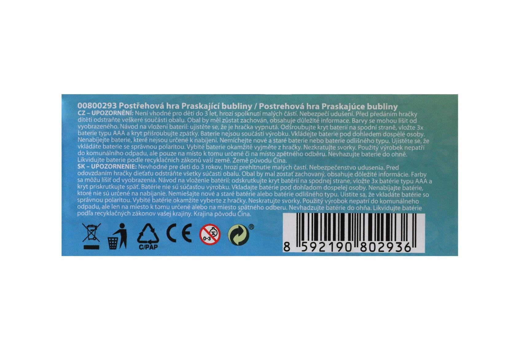 Zabavna elektronička pop-it igra za djecu i odrasle trenira brze reakcije, pamćenje i zapažanje. Pritisni svjetleće mjehuriće, ispuni zadatke u 4 načina igre i napreduj u sljedeće razine. Kompaktno izvedenje, dvije varijante boja i jednostavno upravljanje čine ovu interaktivnu igračku sjajnim suputnikom kod kuće i na putovanju. Napajanje 3× AAA (nisu uključene).