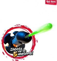 Uđi u svijet nindža s kompletnim setom koji spaja sigurnu akciju i maštu. Mač s gumbom aktivira svjetlosne i zvučne efekte, maska daje pravu atmosferu, a tri strelice skrivene u dršci mača mogu se jednostavnim pritiskom ispaliti. Idealno za dinamičnu igru u zatvorenom i na otvorenom.