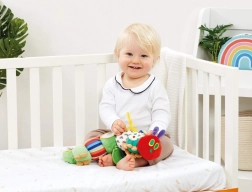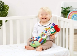 Upoznajte kultni lik iz knjige – Vrlo gladna gusjenica – kao meku tekstilnu aktivnu igračku za bebe od rođenja. Šareni uzorci, različite teksture, dječje sigurno zrcalce i grizalica u obliku lista potiču senzorni razvoj, koordinaciju ruka–oko te aktivnu igru kod kuće i na putu. Praktične petlje omogućuju lako pričvršćivanje na kolica, autosjedalicu ili krevetić.