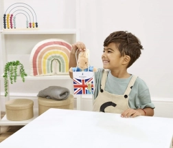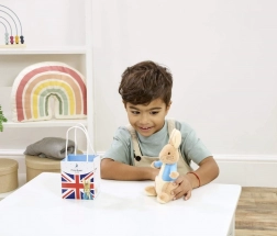 Igračka je izrađena od pomno odabranih, kvalitetnih i održivih materijala te dolazi u elegantnoj poklon-vrećici s motivom Union Jack – spremna za trenutno darivanje.