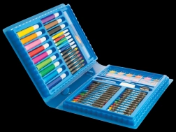 Ovaj univerzalni set razveselit će svakog malog likovnjaka. U čvrstoj plastičnoj kutiji nalaze se vodene boje, flomasteri, voštane bojice i olovke u boji, dopunjeni šiljalom i gumicom. Zahvaljujući preglednom rasporedu svaki dio ima svoje mjesto, a set se lako prenosi.