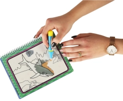 Ova višekratna vodena bojanka pruža djeci sate zabave. Zahvaljujući čarobnom vodenom peru, na stranicama se u dodiru s vodom pojavljuju jarke boje i skriveni detalji podmorskog svijeta. Nakon sušenja slika izblijedi i dijete može ponovno i ponovno bojati.