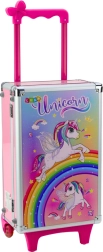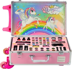 Ovaj bogat set kozmetike za djecu smješten je u čvrstom kovčegu s motivom jednoroga koji oduševljava na prvi pogled. Zahvaljujući izvlačnoj ručki i kotačima dijete ga lako nosi kamo god ide – u posjet, na odmor ili po kući. Svi uključeni proizvodi su nježni prema dječjoj koži i lako se ispiru, pa se može igrati bez brige.