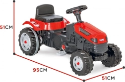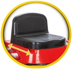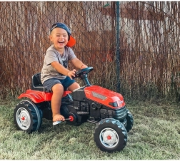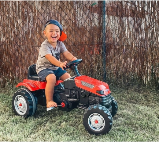 Za maksimalnu udobnost traktor ima sjedalo podesivo u 6 stupnjeva (naprijed–natrag), trubu na volanu i lančani pogon na stražnji kotač za glatko ubrzanje. Prednja okretna osovina olakšava manevriranje, a vučna kuka omogućuje priključivanje prikolice ili druge opreme za još više scenarija igre.