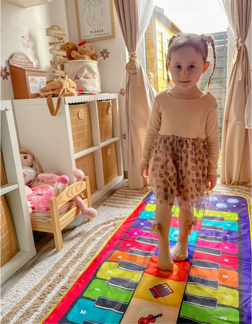 Interaktivna glazbena podloga – klavir od brenda WOOPIE donosi zabavu za cijelu obitelj. Djeca mogu plesati, svirati i pjevati, razvijati koordinaciju i glazbeni osjećaj. Podloga je mekana, s protukliznom donjom stranom, ima 10 klavirski tipki i ikone 8 instrumenata, nekoliko načina reprodukcije, snimanje i povratno reproduciranje, a nakon 3 minute neaktivnosti prelazi u štedljivi način rada.
