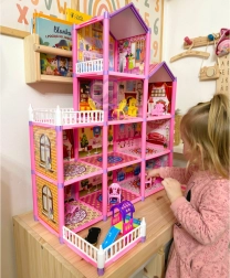 Otkrijte svijet mašte s kućicom za lutke WOOPIE Lovely House. Ova prostrana, višekatna vila nudi razne prostorije, balkone i krovove koji pozivaju na realistične prizore obiteljskog života. Djeca će uživati i u slaganju i u naknadnom uređenju interijera pomoću detaljnog namještaja i dodataka.