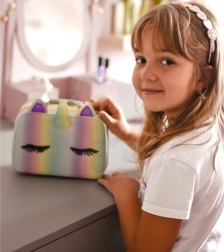 Ovaj šareni kovčeg s ugrađenim zrcalom idealan je za sigurno čuvanje kozmetike i dodataka. Ne samo da štiti njihov sadržaj, već također dodaje čaroliju i razigranost svakoj dječjoj sobi.