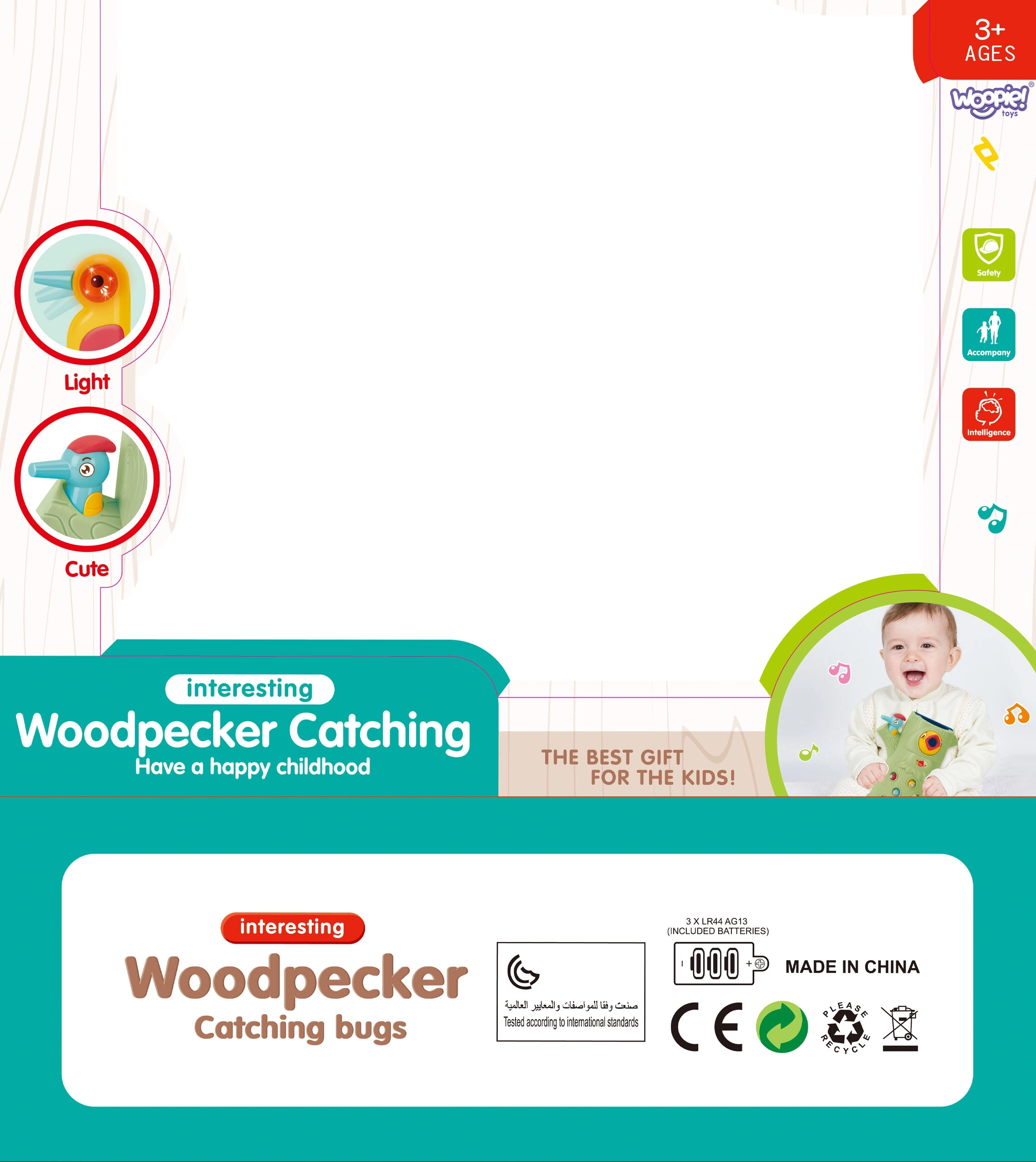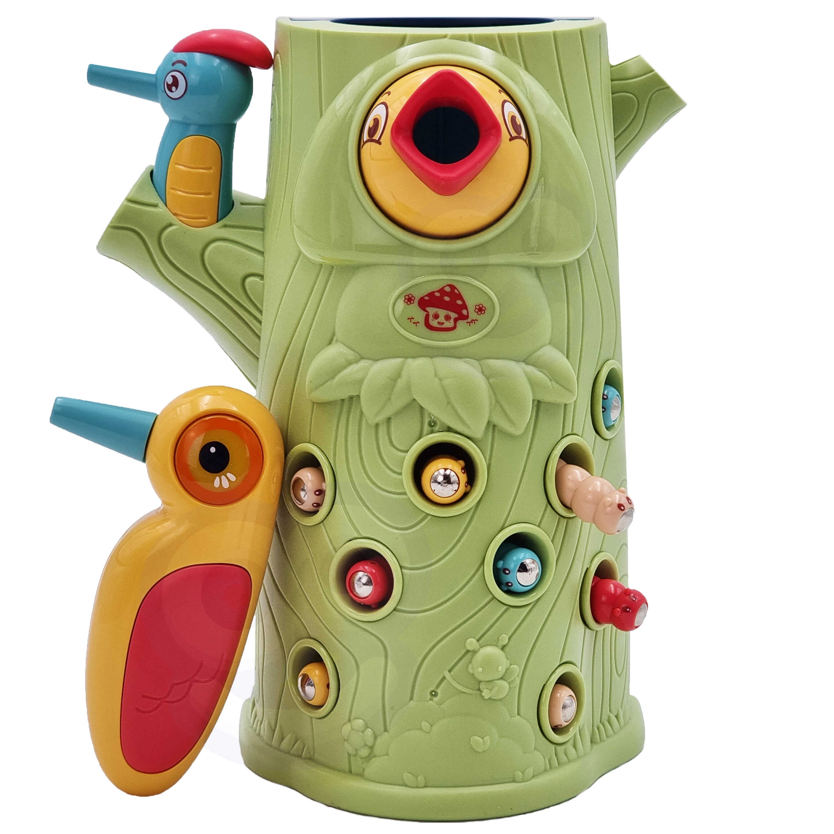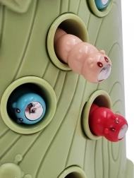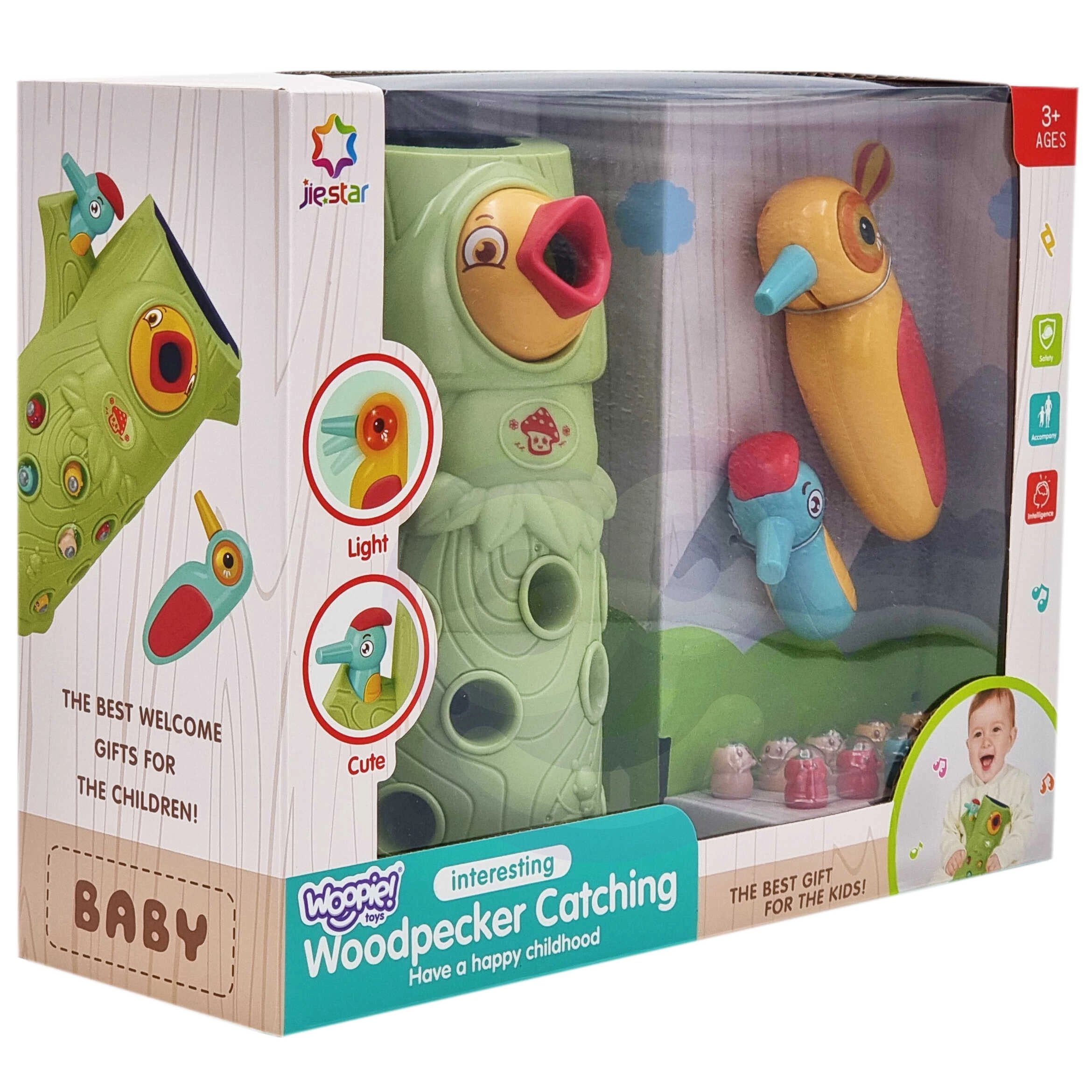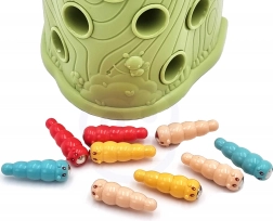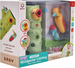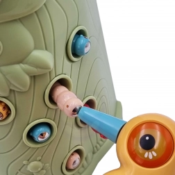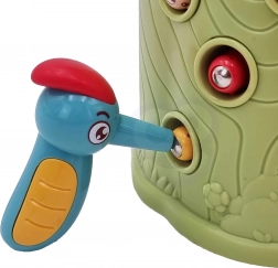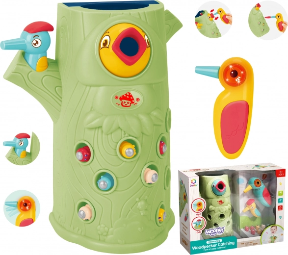 Vještinska igra Ulovi bubu brenda Woopie nudi sjajnu priliku za zajedničko provođenje vremena s vašim djetetom. Jednostavna pravila i intuitivno rukovanje omogućuju igru gotovo za svakoga. Cilj igre je hvatanje buba djetlom s magnetom, koji skriva bube u rupama stabla, te njihovo naknadno ubacivanje u kljun ptice. U pakiranju ćete, osim dvaju djetlića za hranjenje ptića i debla sa zviždaljkom, pronaći i 9 buba. Veći djetlić ima dodatne funkcije: svijetli, pomiče kljun i ispušta zvukove i melodije. Dovoljno je pritisnuti dršku pa će se oko djetlića upaliti i pokrenut će se vesela ljuljajuća melodija, ptica također može pomicati kljun prema dolje i njezino oko svijetli dok cvrkuće. Igru mogu istovremeno koristiti dvoje djece. Zahvaljujući igri djeca se uče kroz zabavu – pomaže razvijati npr. motoričke (pokretne) i vizualne vještine. Igra je izazov za djecu, zahtijeva koncentraciju i manualnu spretnost, čime ih zaokuplja.