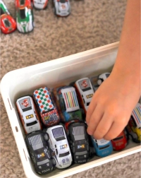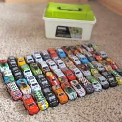 Kutija s ručkom omogućuje jednostavno prenošenje i spremanje autića nakon igre.