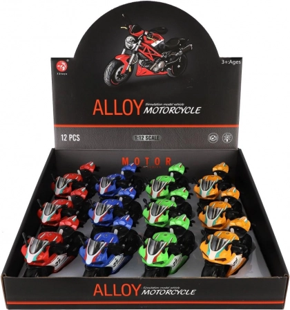 Plastični cestovni motocikl 13 cm s povratnim navijanjem, svjetlom i zvukom. Brza akcijska igra za djecu od 3 godine. Više boja, detaljna izrada.