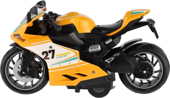 Ovaj plastični cestovni motor spaja dinamičan dizajn s jednostavnim upravljanjem. Dovoljno ga je povući unatrag i pustiti – motor će se brzo zaletjeti i djeci pružiti akcijsku zabavu. Integrirano svjetlo i zvuk dodaju na realističnosti, pa svaka vožnja djeluje kao prava utrka.