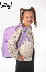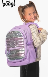 Torba Core Lavanda s iridescentnim prednjim džepom stvara moderan izgled i nudi dovoljno prostora za organizaciju školskog pribora.