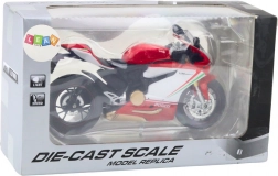 Ovaj crveno-bijeli model inspiriran trkaćim motociklima oduševit će djecu, kolekcionare i ljubitelje automobilizma. Precizna izrada, čvrsta metalna karoserija i funkcionalni elementi čine ga atraktivnim dodatkom kolekciji i upečatljivom dekoracijom.