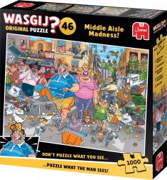 Puzzle JUMBO WASGIJ 46: Ludilo glavne ulice okreće klasično slaganje naglavačke. Umjesto predloška s kutije slažete scenu iz perspektive odabranog lika, koju otkrivate uz pomoć smjernica i tragova na omotu. Zbog toga je svako slaganje drugačije, napeto i iznimno zabavno.