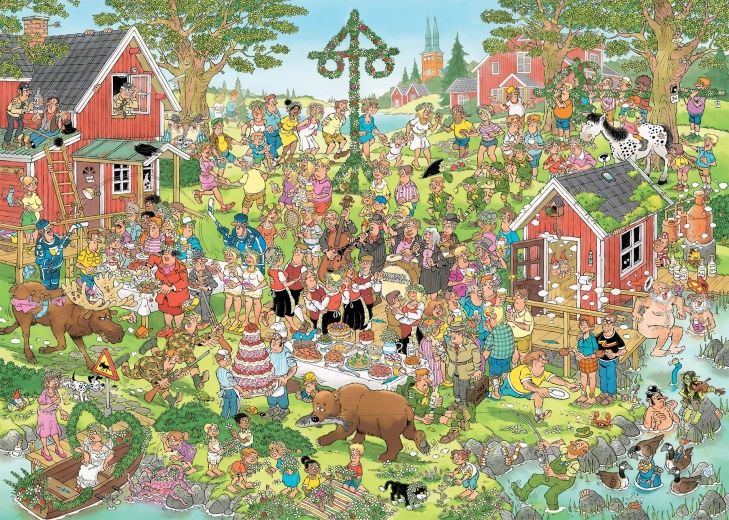 Popularne puzzle iz serije Jan van Haasteren vode vas na otkačeni ljetni festival, gdje se stalno nešto događa. Tipičan crtani stil, prepun likova, duhovitih situacija i maštovitih detalja, jamči da vam slaganje neće dosaditi. Svaki će se dio savršeno uklopiti na svoje mjesto i otkriti šarenu scenu punu energije.