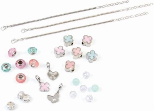Otkrijte radost DIY nakita i dizajnirajte tri originalne narukvice prema vlastitoj mašti. Kombinirajte nježne pastelne perlice, blistave detalje i slatke motive srdašaca, cvjetića ili leptira. Jednostavno kopčanje i izmjenjivi privjesci omogućuju brzo mijenjanje stila prema raspoloženju i odjevnoj kombinaciji.