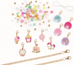 Izradite do pet stilskih narukvica s čarobnim privjescima i slatko mirisnim balzamima za usne. Ovaj kreativni set donosi zabavno stvaranje, jagodno sjajilo za usne i karnevalski dizajn s okretnim pakiranjem u obliku panoramskog kotača. Sigurna kozmetika za djecu od 8 godina, sjajan poklon za male kreatore i ljubitelje mode.