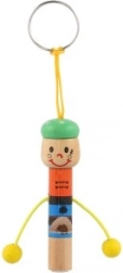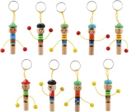 Presladak drveni privjesak u obliku čovječuljka s integriranom zviždaljkom duljine 8 cm stilski je i praktičan dodatak. Zahvaljujući petlji lako ga pričvrstite na ključeve, ruksak ili pernicu. Izdvaja se veselim bojama i razigranim dizajnom, pa će razveseliti i djecu i odrasle. Birajte iz mješavine vrsta i uživajte u laganoj i izdržljivoj drvenoj konstrukciji te praktičnoj zviždaljci uvijek pri ruci.