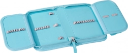 Pernica s dvjema preklopnim stranicama i kvalitetnim patentnim zatvaračem, opremljena džepićima za sitnice i prozorčićem za raspored sati.