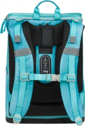 Školska aktovka s ojačanim tijelom i pomičnim leđnim sustavom koji omogućuje podešavanje veličine prema rastu djeteta.