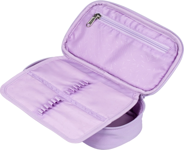 Elegantna i kompaktna školska pernica BAAGL Lavender nudi prostranu glavnu komoru s dvostrukim preklopnim listom. Izdržljiv materijal i YKK patentni zatvarači osiguravaju kvalitetnu uporabu.