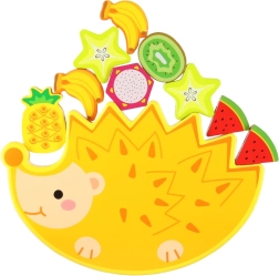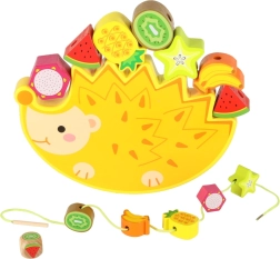 Slatki drveni jež s raznobojnim voćnim kockicama nudi dvije igre u jednoj: nizanje voća na vezicu i balansirajuće slaganje na leđa ježa. Poticanje fine motorike, logičkog razmišljanja i koordinacije oko–ruka. Kvalitetno glatko brušeno drvo i žive boje mame na dugu i smislenu igru.