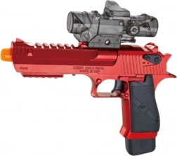 Električni dječji pištolj spaja moderan izgled s praktičnom funkcionalnošću. Zahvaljujući potpuno automatskom načinu rada dovoljno je pritisnuti okidač i tempo igre odmah raste. Kućište od izdržljive plastike i udobna drška dobro leže u ruci i pri duljoj igri; crveno‑crna izvedba i odvojivi imitirani optički nišan daju igrači atraktivan stil.