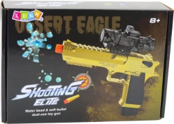 Ispaljuje gel (vodene) kuglice i mekane pjenaste strelice. U pakiranju se nalazi i 3,7 V Li‑ion baterija, USB kabel, spremnik i set streljiva za trenutačan početak.