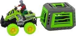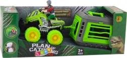 Kvad s vozačem i kavezom za dinosaura uzbudljiva je igračka koja djecu prenosi u svijet neobičnih pustolovina – ravno u divlju džunglu punu opasnih dinosaura i fascinantnih otkrića. Šareno terensko vozilo s velikim, izražajnim kotačima osmišljeno je za dinamičnu zabavu – i u zatvorenom i na otvorenom. Zahvaljujući priloženom kavezu, djeca se mogu uživjeti u ulogu hrabrog lovca prapovijesnih gmazova i prevoziti uhvaćenog dinosaura na sigurno mjesto.