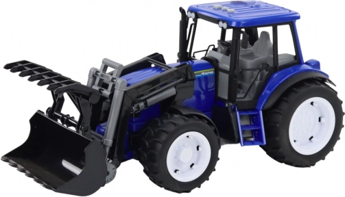 Ovaj plavi traktor u mjerilu 1:10 impresionira detaljno izrađenom kabinom i velikim kotačima za stabilnu vožnju. Funkcionalnu prednju kašiku moguće je lako podizati i spuštati, što podržava realistične scenarije s farme ili gradilišta.
