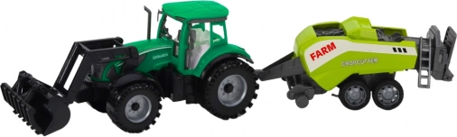Zeleni traktor s utovarivačem i prešom za sijeno – plastični set farme za djecu